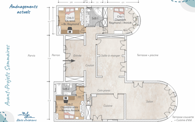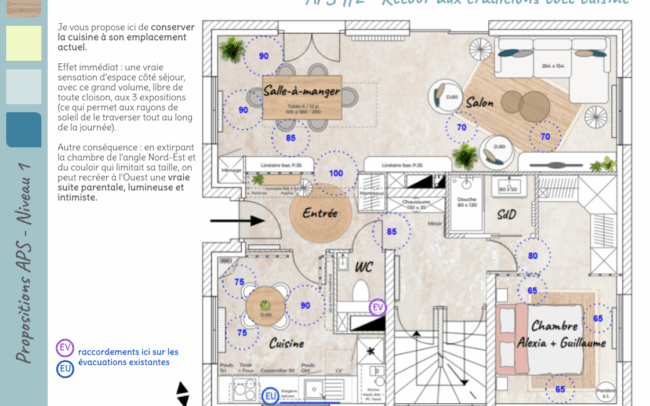 Je vous propose un accompagnement méthodique et transparent : des options pour comparer, des plans et perspectives pour vous aider à vous projeter, et un projet facilement interprétable pour vos artisans, sans zone d’ombre.