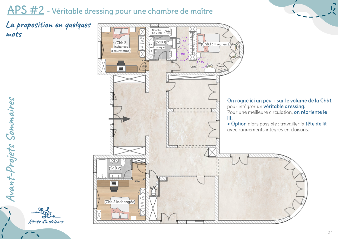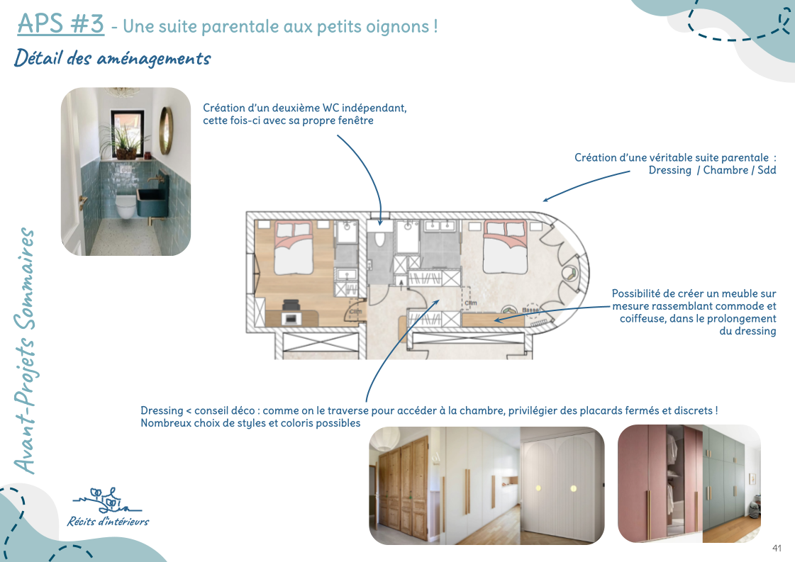 Créer un espace nuit plus fonctionnel, avec une salle d’eau supplémentaire et un dressing, tout en conservant la belle sensation d’espace qui fait le charme de la maison.
