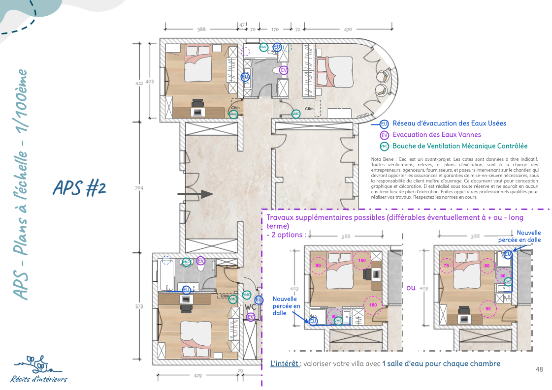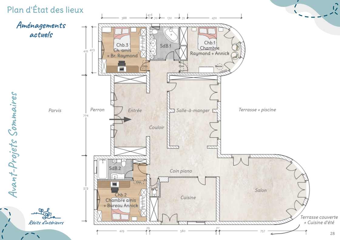 Réorganisation de l’espace nuit d’une villa de plain-pied de 180 m² : création d’une suite parentale, rénovation et réattribution des salles de bain et salles de douche de la maison. Objectif : moderniser, structurer et révéler le potentiel de la maison.